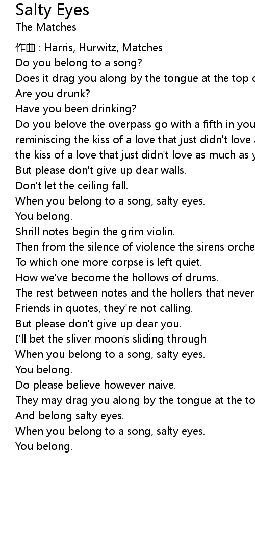 | When you belong to a song, salty eyes. | |