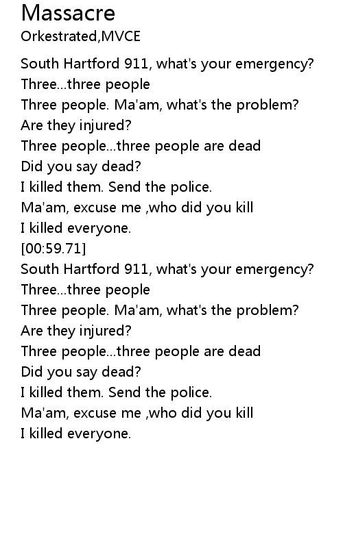 | [00:32.41] | South Hartford 911, what's your emergency? |
