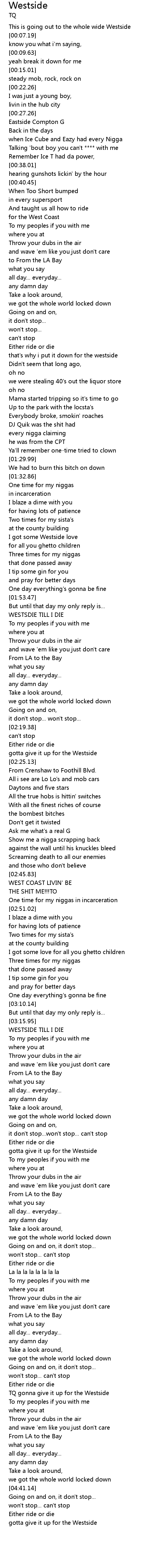 TQ gonna give it up for the Westside |