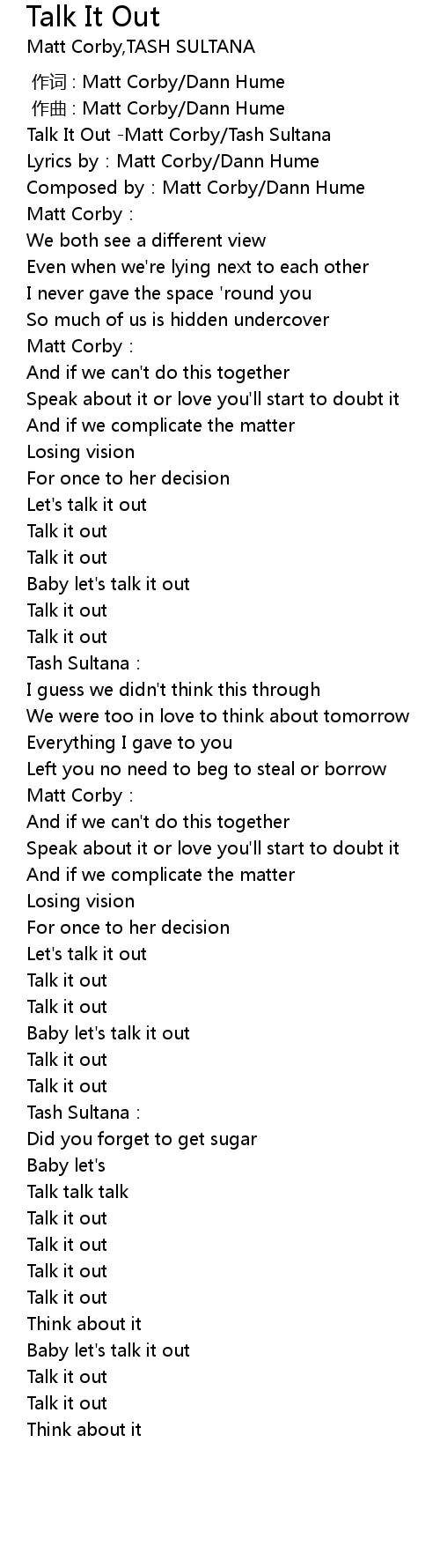 | [00:58.212] | Baby let's talk it out |