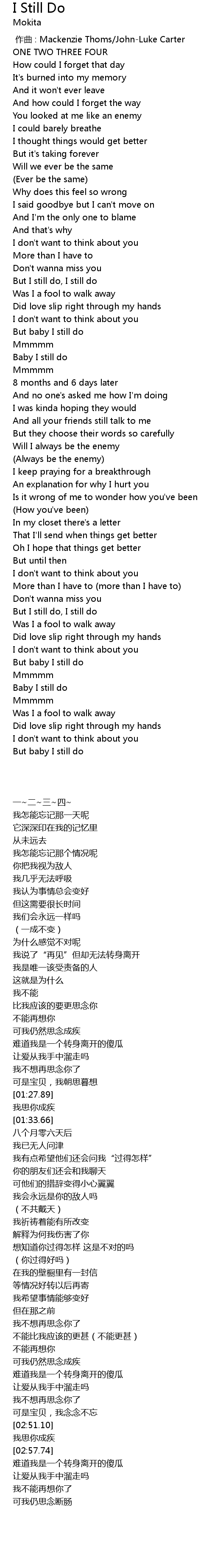 | [02:55.37] | Baby I still do |