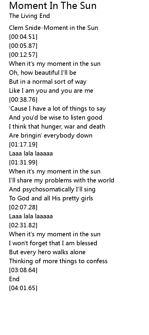 When it's my moment in the sun |