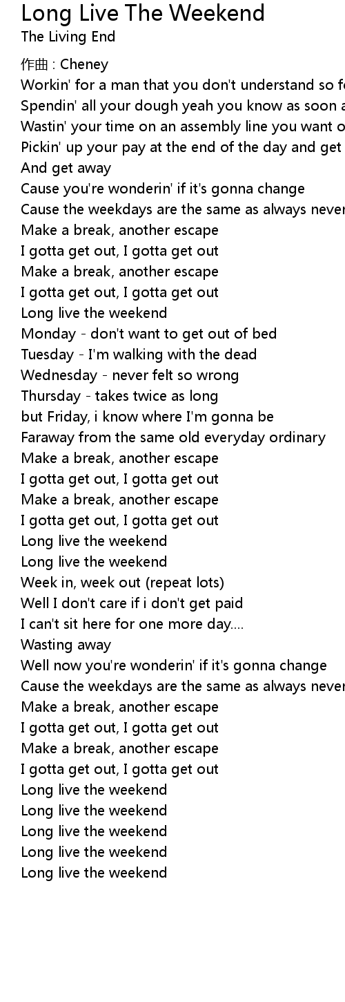 | Long live the weekend | |