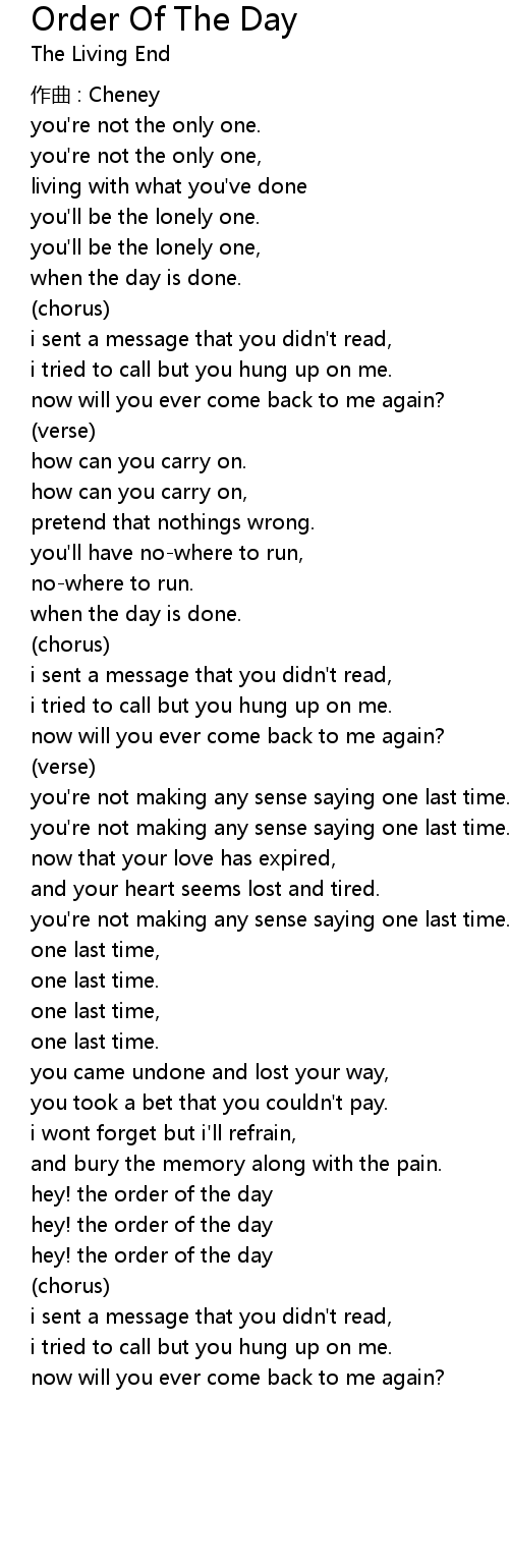 | Song | Order Of The Day |