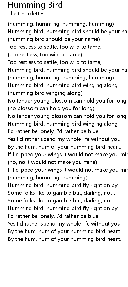 Humming Bird Lyrics