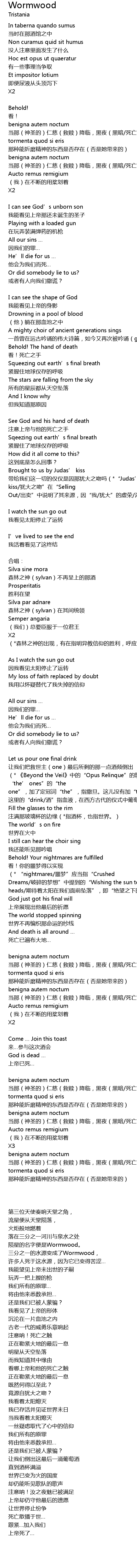 | (* “nightmares/噩梦”应当指“Crushed Dreams/破碎的梦想”中提到的“Wishing the sun to fall down on our heads/期待着太阳在我们面前坠落”,即“绝望之下的灭世情怀”。) | |
