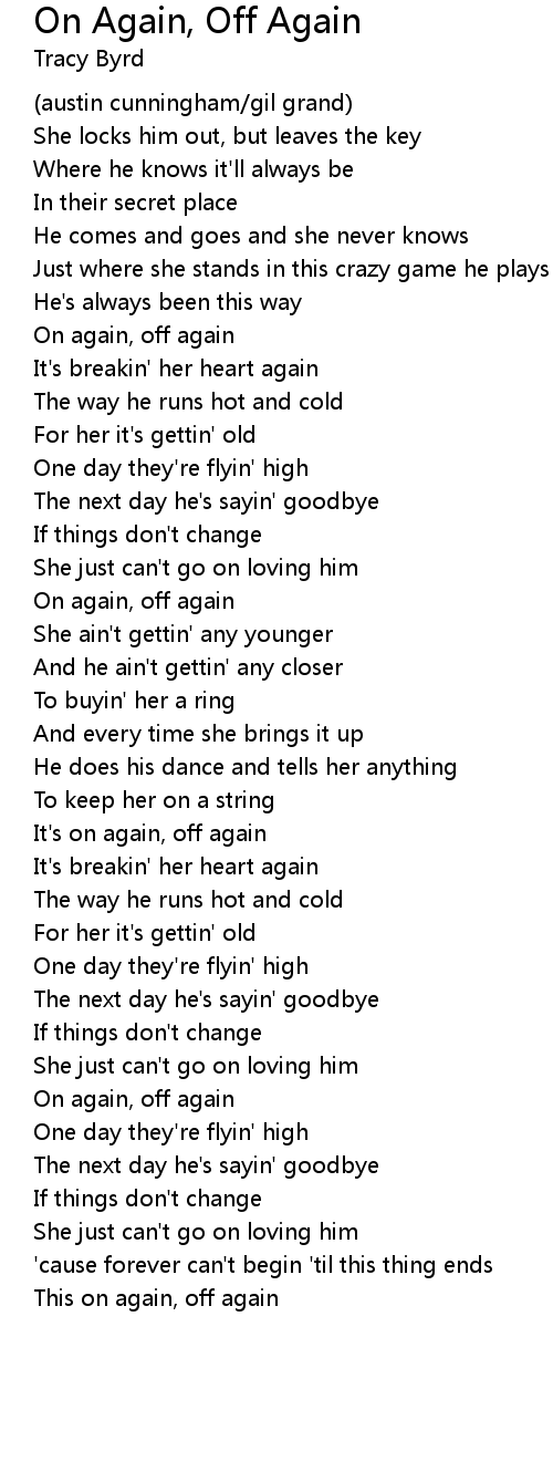 On again, off again |