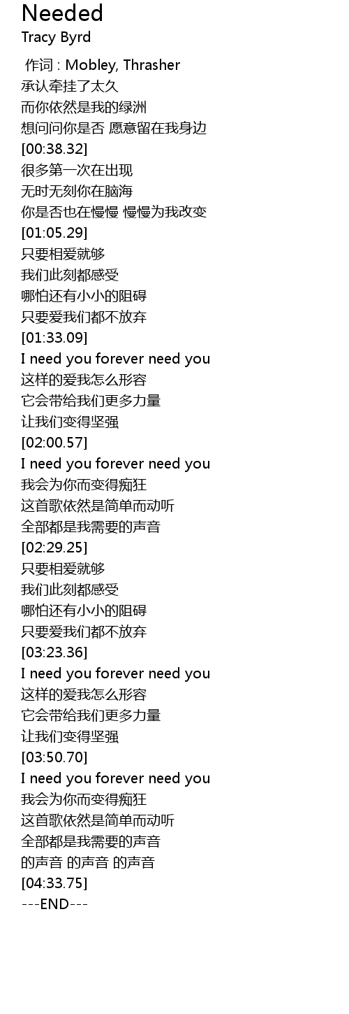 | [04:38.00] | ---END--- |
