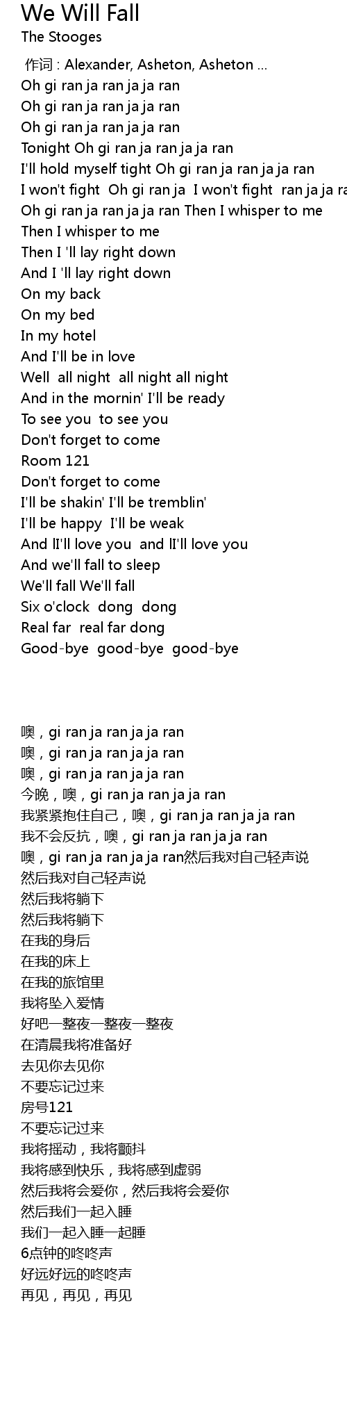 | [00:00.00] | 作词 : Alexander, Asheton, Asheton ... |