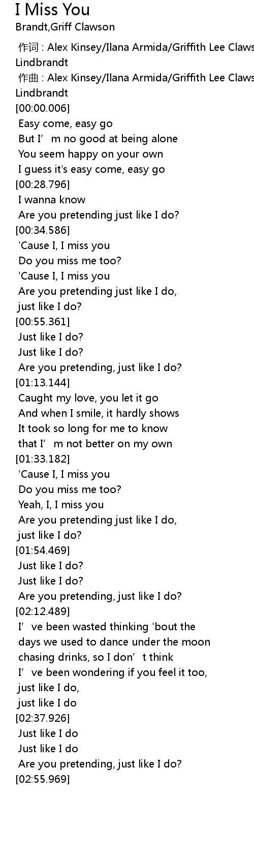 | [00:44.517] | 'Cause I, I miss you |