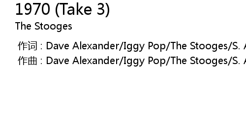 | [00:00.000] | 作词 : Dave Alexander/Iggy Pop/The Stooges/S. Asheton/R. Asheton |
