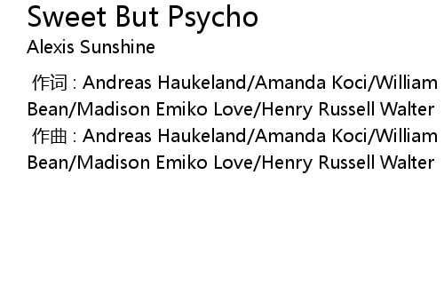 | [00:00.00-1] | 作曲 : Andreas Haukeland/Amanda Koci/William Ernest Lobban Bean/Madison Emiko Love/Henry Russell Walter |