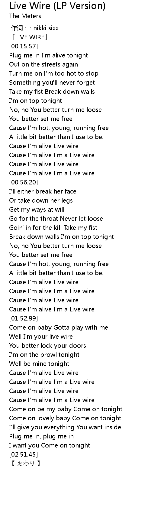 | [00:01.57] | 「LIVE WIRE」 |