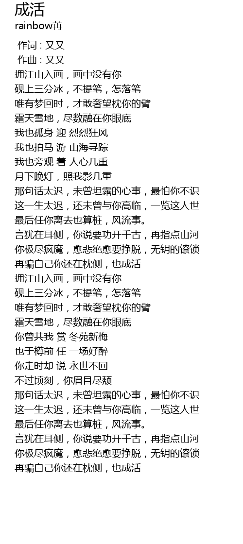 | [04:05.76] | 再骗自己你还在枕侧,也成活 |