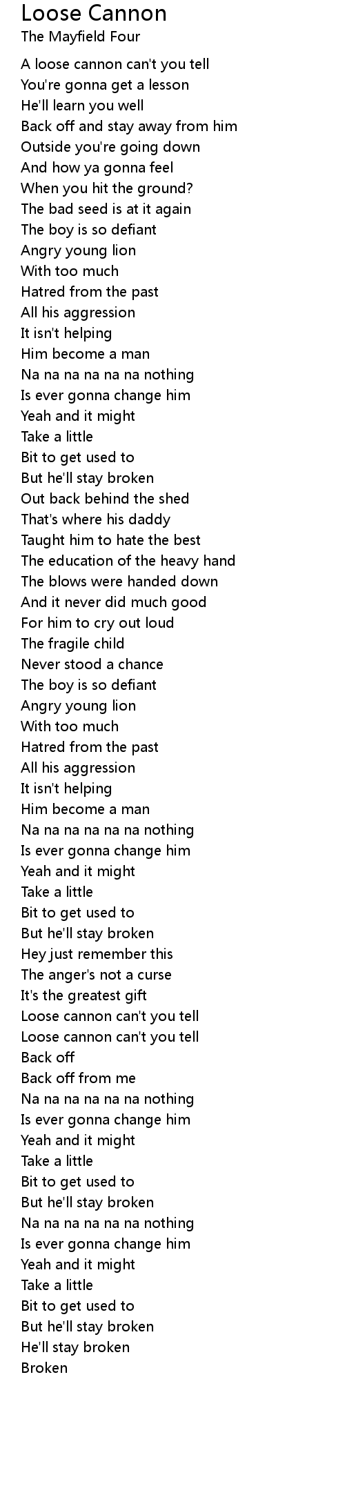 Loose cannon can't you tell |