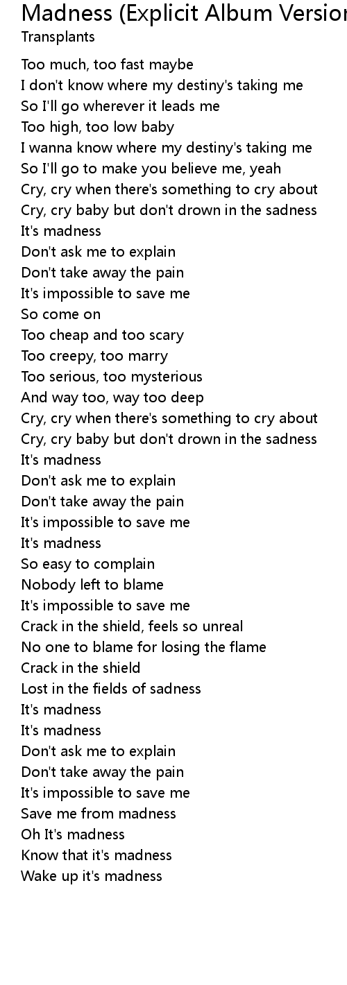 Save me from madness |