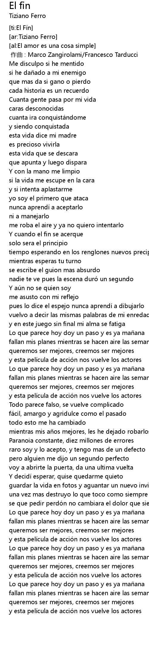 | [02:42.80] | Lo que parece hoy doy un paso y es ya ma ana |
