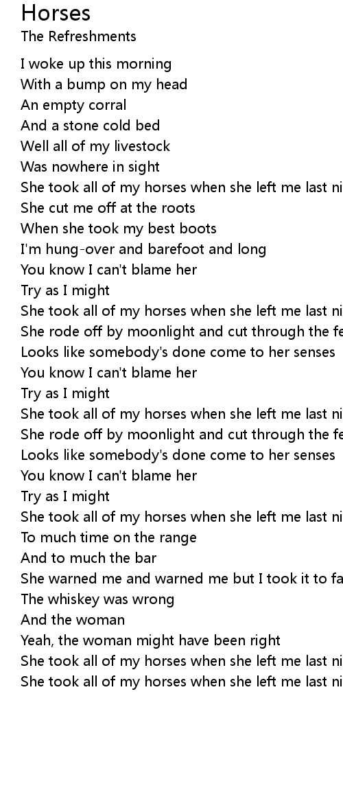 She took all of my horses when she left me last night |