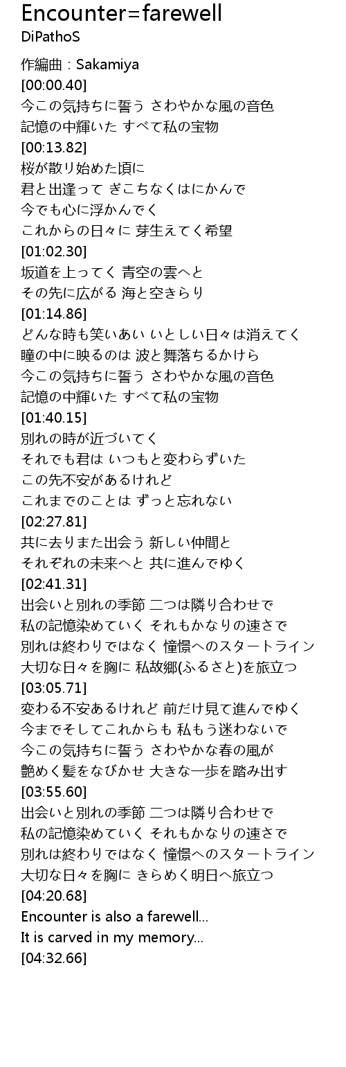 | [04:20.98] | Encounter is also a farewell... |