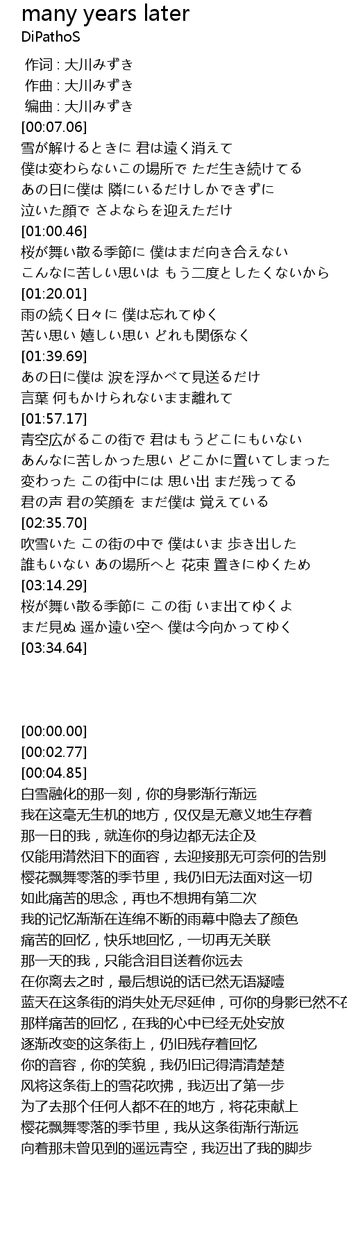 | [01:01.99] | 桜が舞い散る季節に 僕はまだ向き合えない |