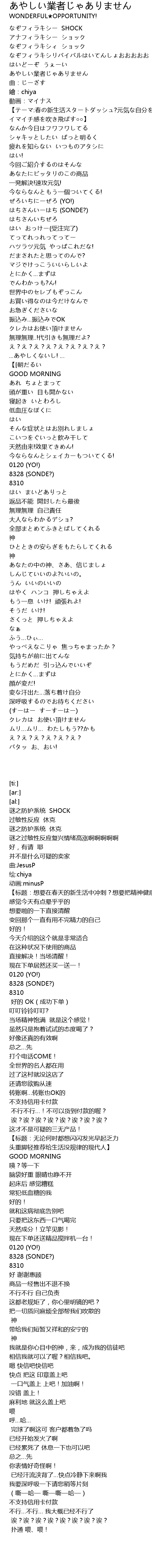 | [00:01.55] | なぞフィラキシー SHOCK |