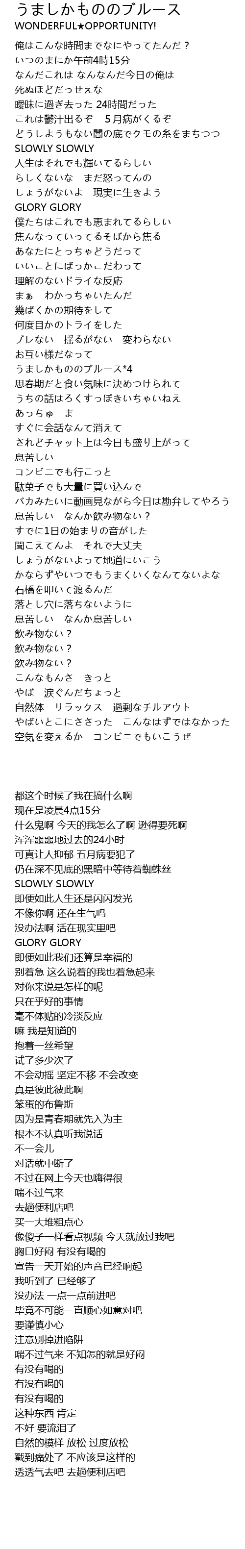 | [01:06.21] | うましかもののブルース*4 |