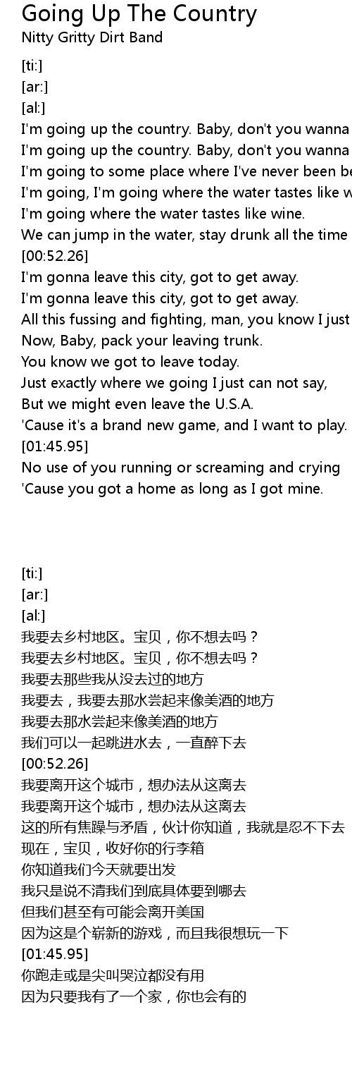 I'm going up the country. Baby, don't you wanna go? |