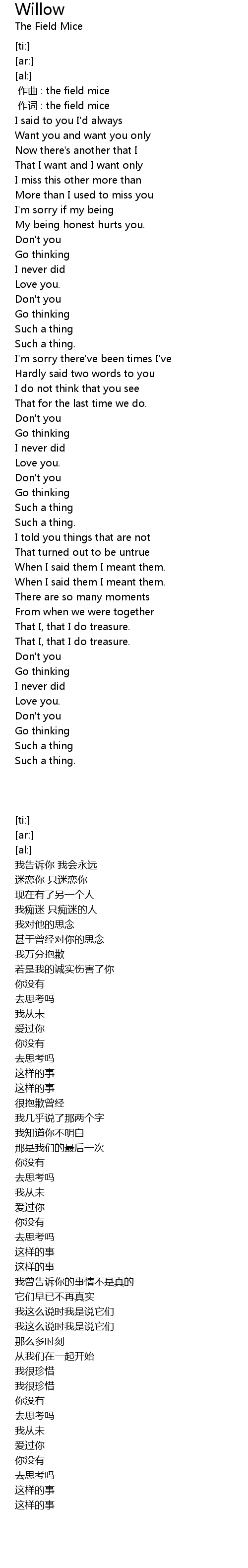 | [00:00.00] | zuo qu : the field mice |