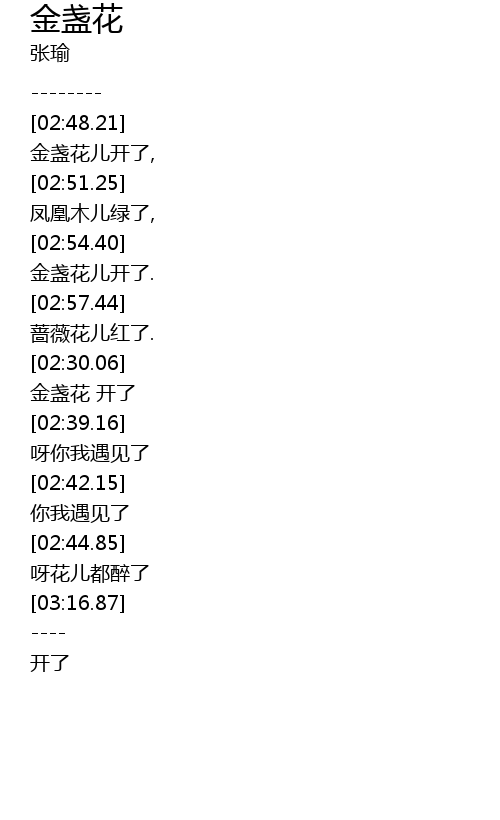 | [00:39.96] | jīn zhǎn huā ér kāi le. |