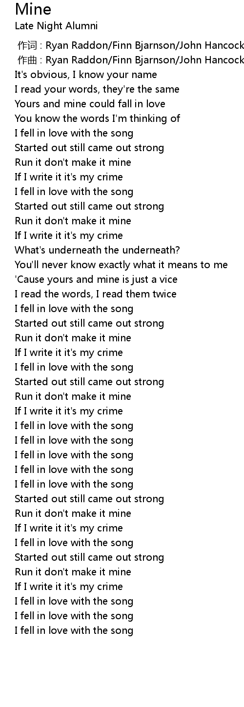 | [01:31.97] | ' Cause yours and mine is just a vice |