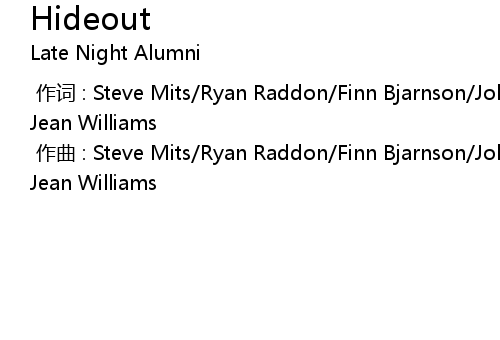 | [00:00.00-1] | 作词 : Steve Mits/Ryan Raddon/Finn Bjarnson/John Hancock/Becky Jean Williams |