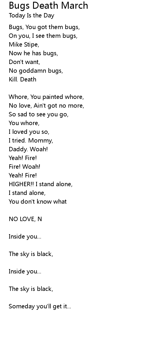 No goddamn bugs, |