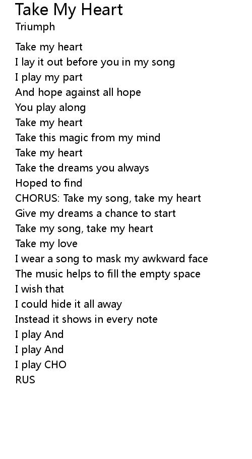 | CHORUS: Take my song, take my heart | |