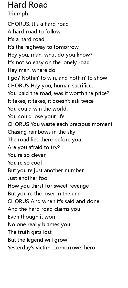 CHORUS: It's a hard road |