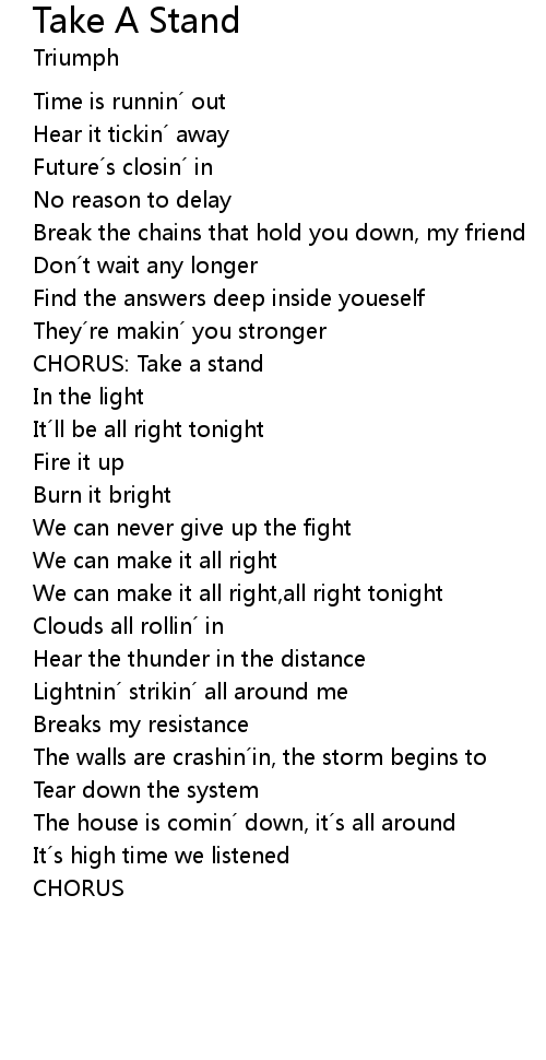 | CHORUS: Take a stand | |