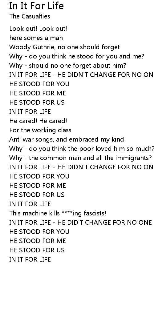 IN IT FOR LIFE |