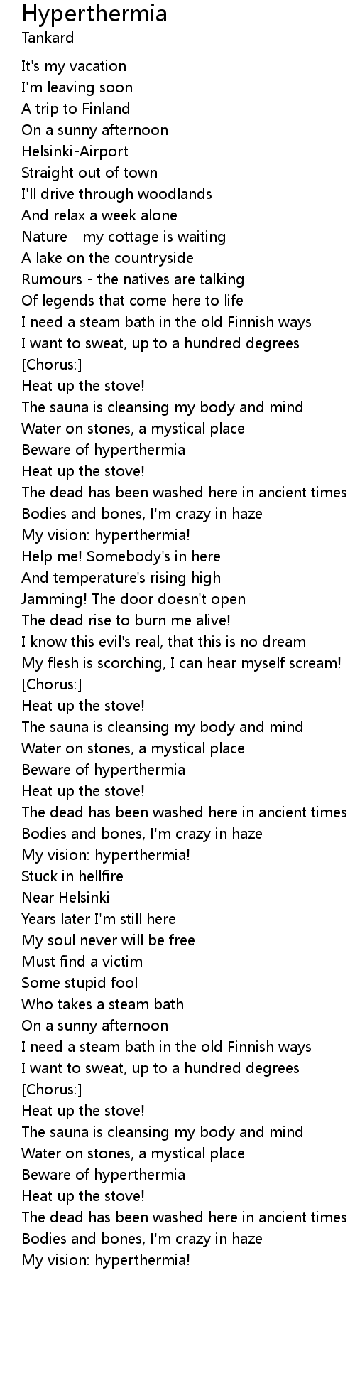 | I want to sweat, up to a hundred degrees | |