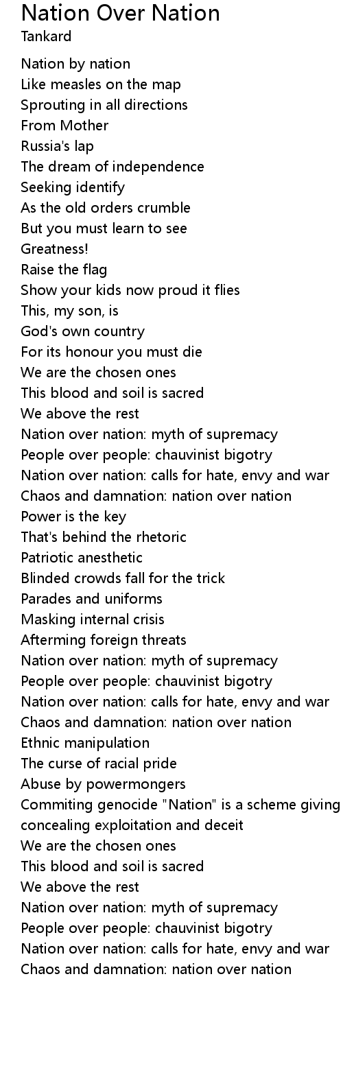 Nation over nation: calls for hate, envy and war |