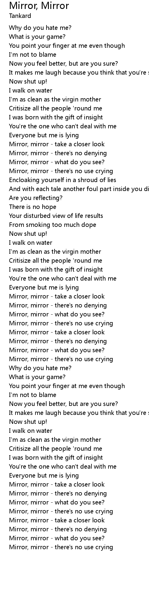 | Mirror, mirror - there's no use crying | |