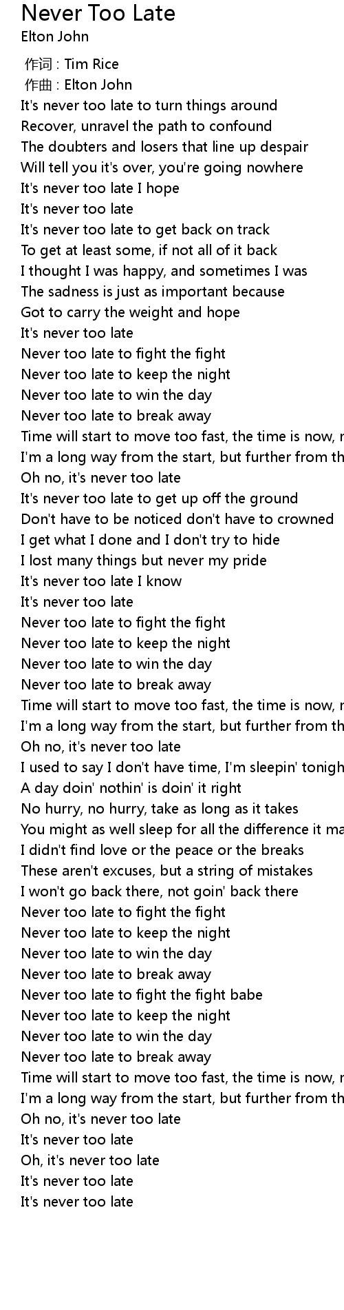 | [03:19.49] | I' m a long way from the start, but further from the end |