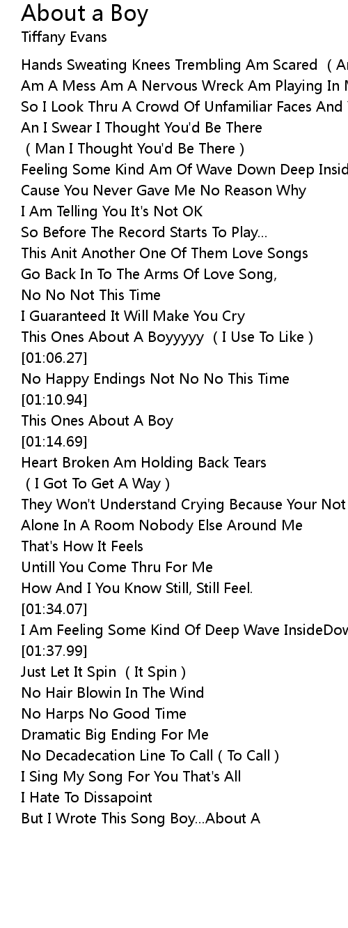 | [01:02.20] | This Ones About A Boyyyyy (I Use To Like) |
