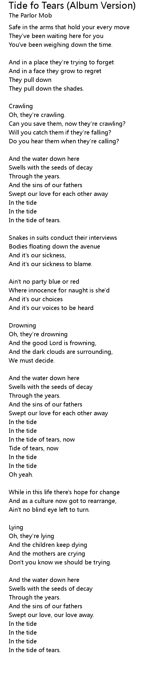 Tide of tears, now |