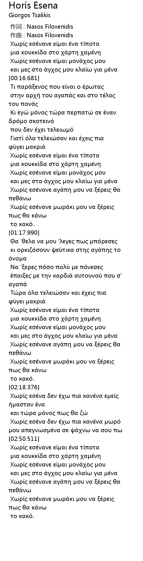 作词 : Nasos Filoxenidis |