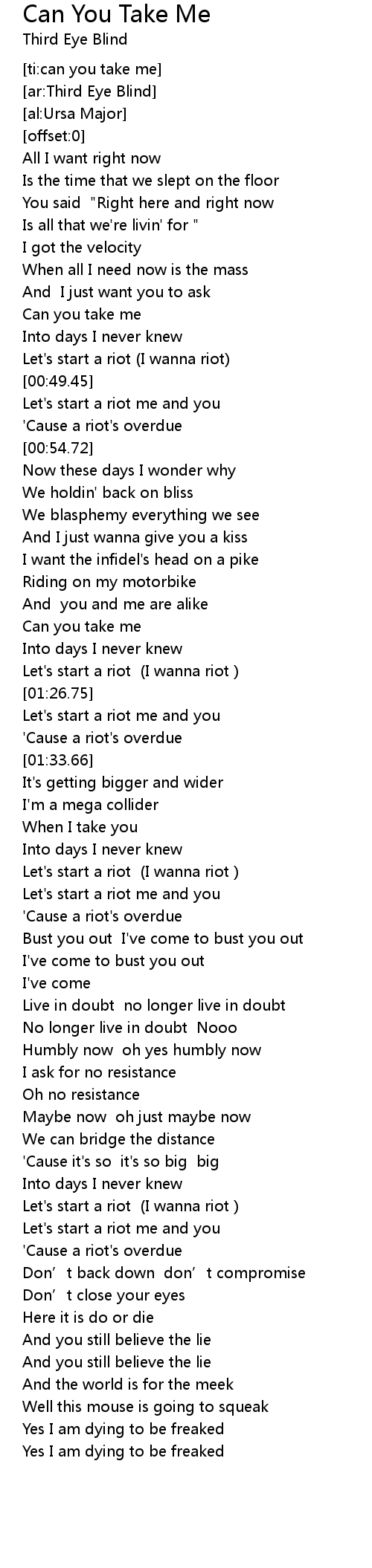 | [00:47.70] | Let' s start a riot I wanna riot |
