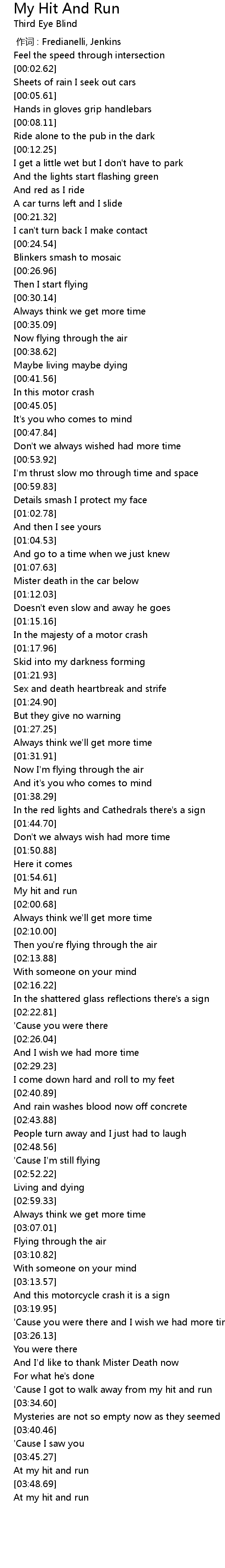 | [03:32.46] | 'Cause I got to walk away from my hit and run |