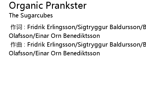 | [00:00.00-1] | zuò qǔ : Fridrik Erlingsson Sigtryggur Baldursson Bragi Olafsson Einar Orn Benediktsson |