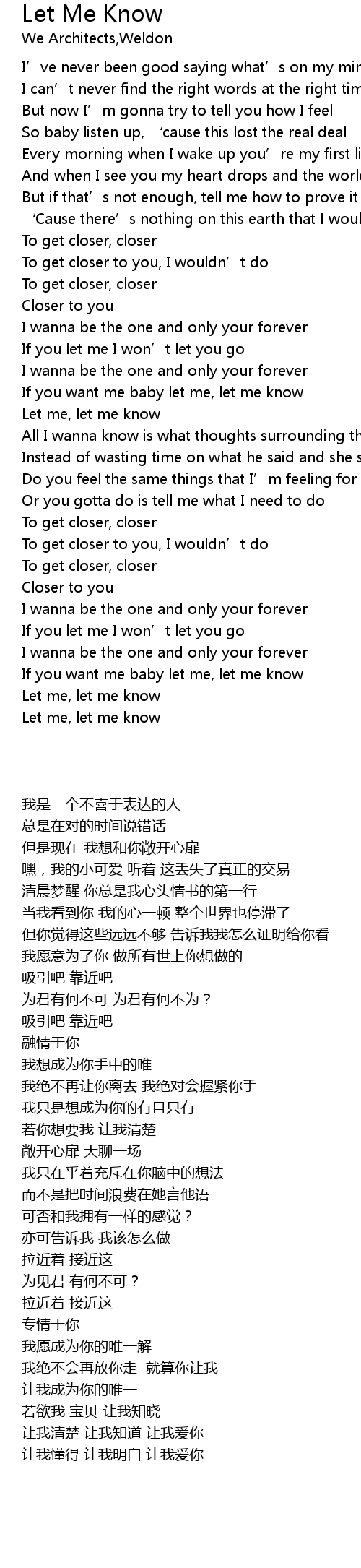 | [01:25.00] | Let me, let me know |