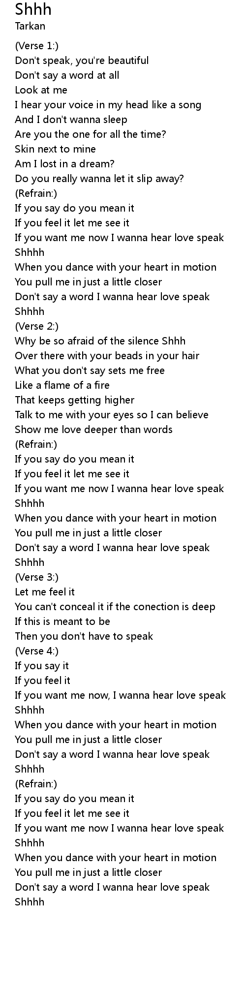 Don't say a word I wanna hear love speak |