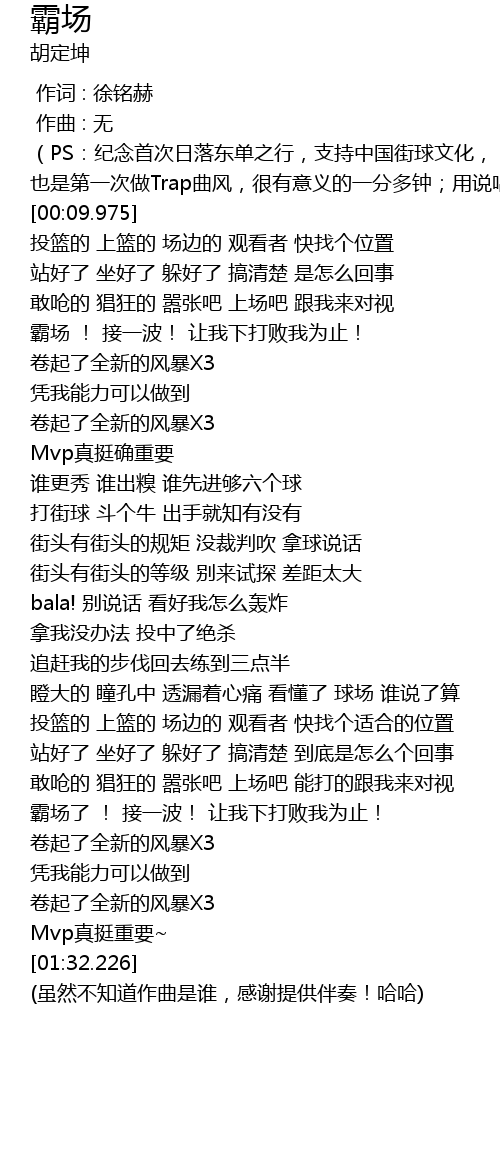 | [00:00.472] | (PS:纪念首次日落东单之行,支持中国街球文化, |