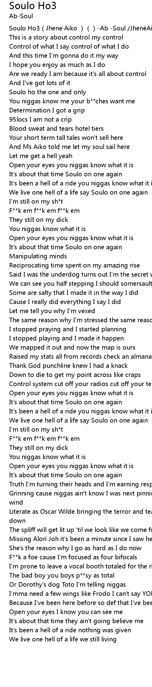 | [00:00.00] | Soulo Ho3 Jhene Aiko Ab Soul Jhene Aiko |